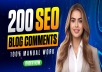 I will give you 200+ Dofollow and Nofollow mix blog comment back links seo within 12 days for 1 only.SERVICE DETAILS Blog comments backlinks from high quality blogs. Mix ...